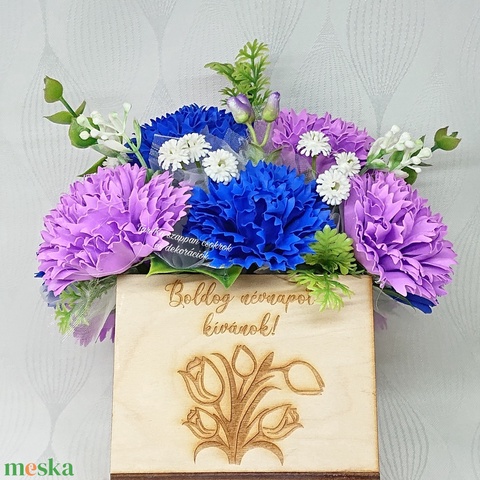 - Anyaga: szappan, organza, művirág, ragasztópisztoly