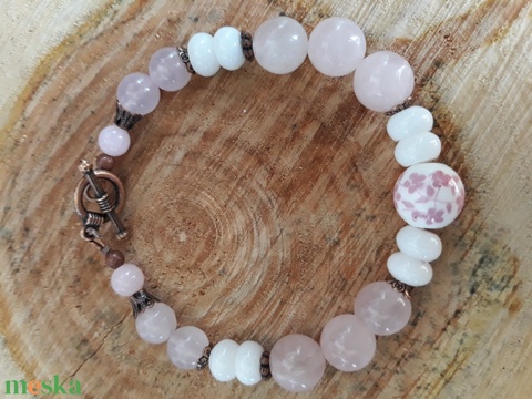 Rózsa -rózsakvarc és fehér jáde karkötő