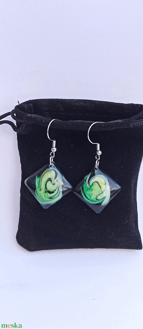 Újdonság! - mismatch epoxi fülbevaló - zöld-fehér absztrakt