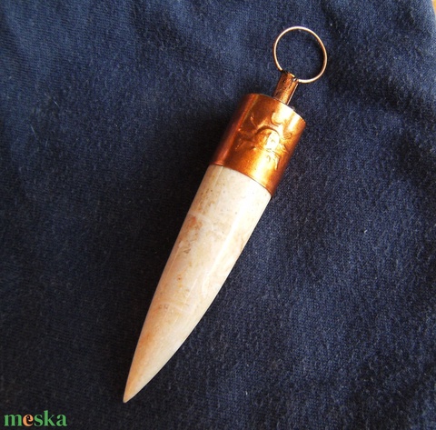 "Jaguár-fog" medál, nyakék, valódi kőből, rézből, pók mintával. Kézzel készült, egyedi darab.