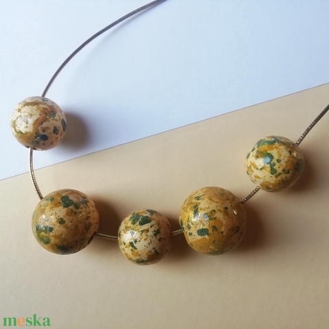 Zöld, mustársárga, arany fa ékszer nyaklánc-KIFUTÓ TERMÉK