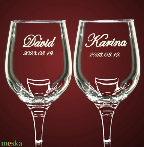 Ez az esküvői pohár minden részletét személyre szabhatod, hogy tökéletesen illeszkedjen az esküvő stílusához és a párok egyedi ízléséhez. Válaszd ki a nevet és a dátumot, hogy örökké emlékeztessen az esküvői napra