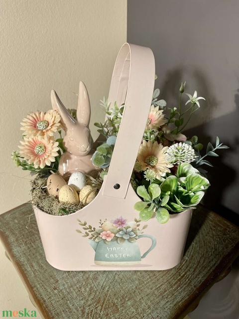 Húsvéti kosárkás asztaldísz nyuszival