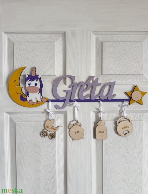 Unikornis névtábla gyerekszobába, ajtóra fából, gyerekszoba dekoráció, babaváró buliba ajándékötlet