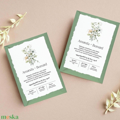"WILDFLOWER" Esküvői meghívó textúrált merített papíron borítékkal - A6 méret
