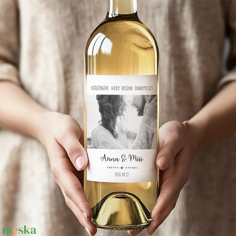 Fényképes esküvői boros vagy pálinkás címke, remek választás szülőköszöntő ajándéknak vagy az esküvői dekoráció kiegészítésére! Tökéletes az esküvőd vendégei részére, bármilyen ajándékra könnyen rá lehet ragasztani, biztosan illeni fog bármilyen esküvői dekorációhoz!