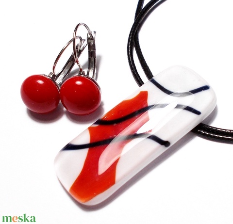 Piros-fehér ékszerszett, ajándék nőknek névnapra, születésnapra.