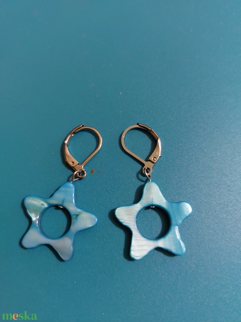 Gyöngyház fülbevaló -kék csillag- orvosi fém francia kapoccsal