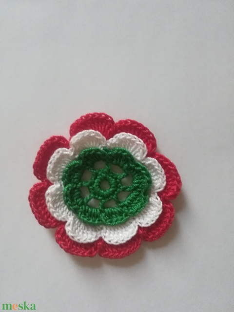 Horgolt, virág alakú kokárda