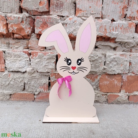 Húsvéti bézs nyuszi - piros orral és rózsaszín masnival