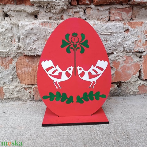 Húsvéti piros tojás - madaras motívummal