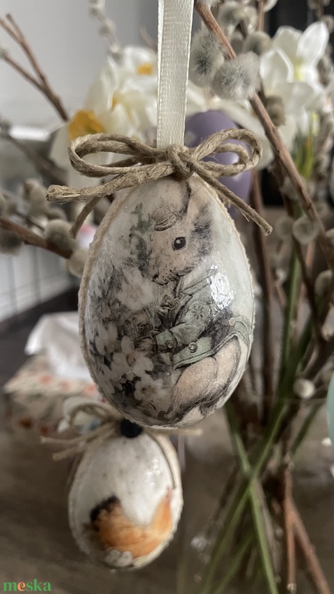 Nyuszis, virágos húsvéti tojás