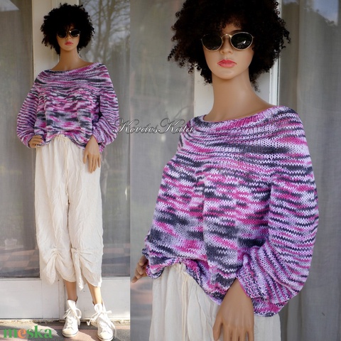 CRAZY LINEN / belle - extravagáns egyedi festésű pamut-len kézzel kötött pulóver