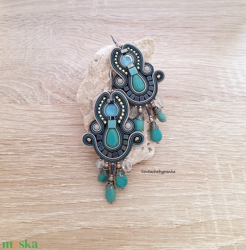 - Anyaga: sújtás zsinór, swarovszki kristály, japán kása, cseh csiszolt gyöngy, ragasztó, cérna, nikkel mentes fémszerelék, cseh kaboson