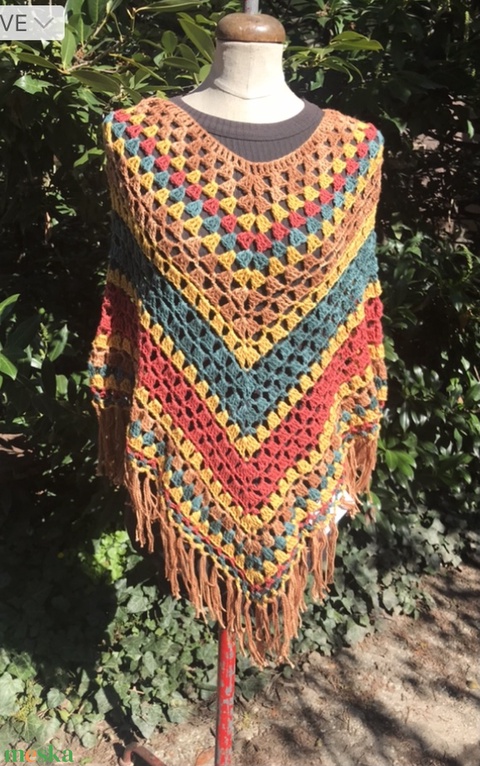 Indián pamut horgolt poncsó