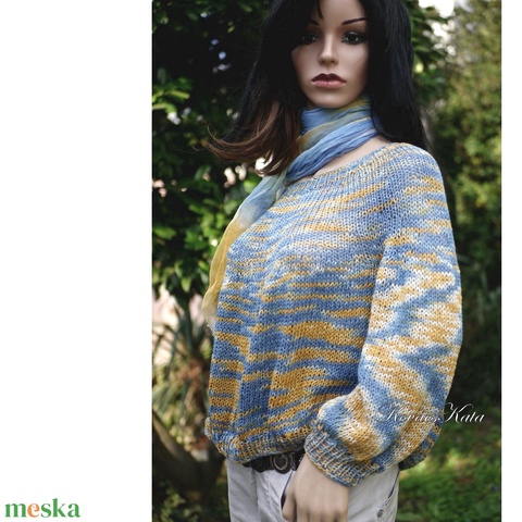 CRAZY LINEN / belle - extravagáns egyedi festésű pamut-len kézzel kötött pulóver / pasztell
