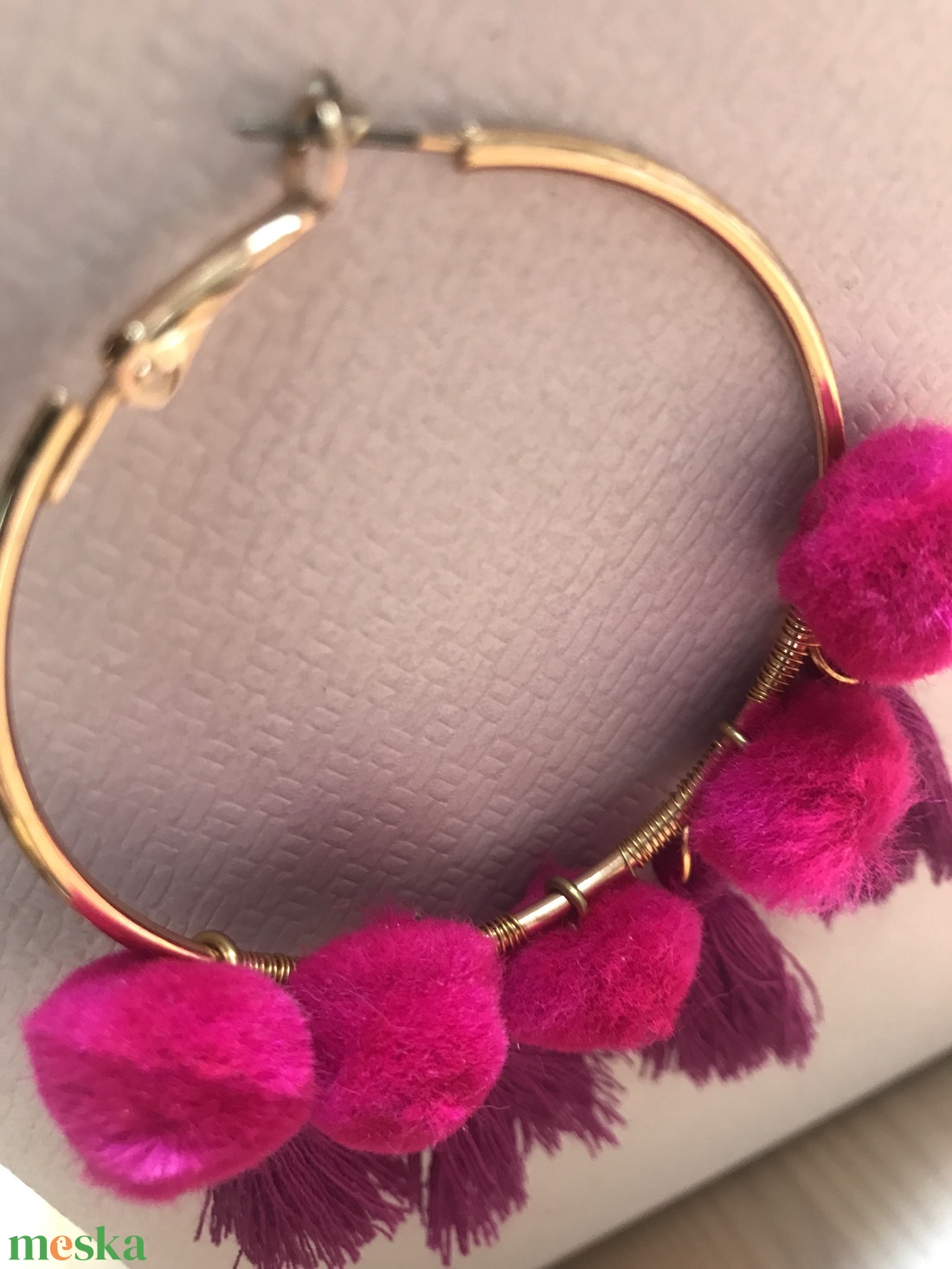 Magenta hippi fülbevaló.