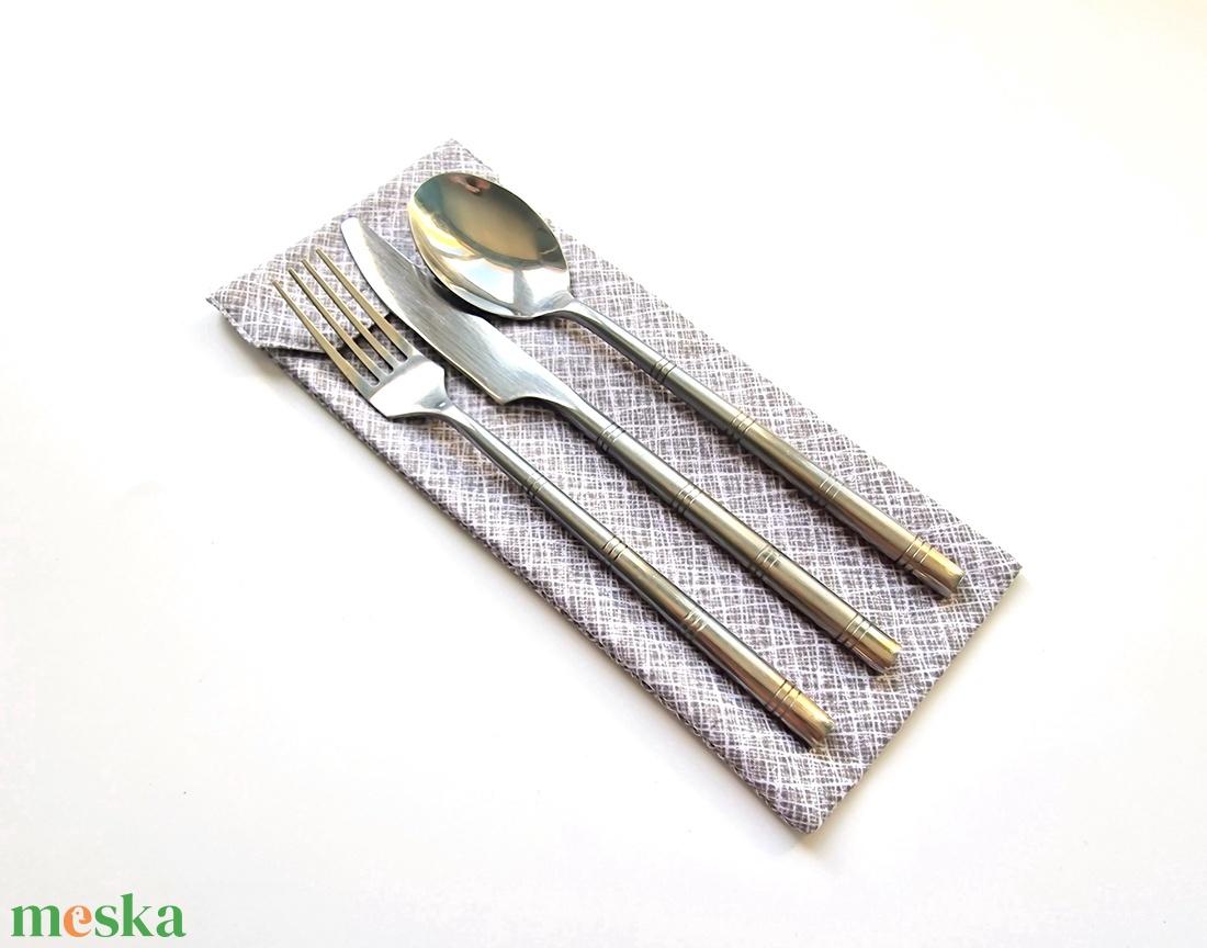 Szürke absztrakt csíkos evőeszköztartó tok - tépőzáras evőeszköztartó, vízhatlan evőeszköz tartó - mintás evőeszköztartó