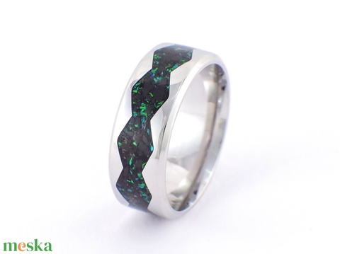 Nemesacél Gyűrű Turmalin Ásvánnyal És Zöld Opállal . Vízálló, Karcálló, Anti-Allergén, Egyedi Megrendelésre!