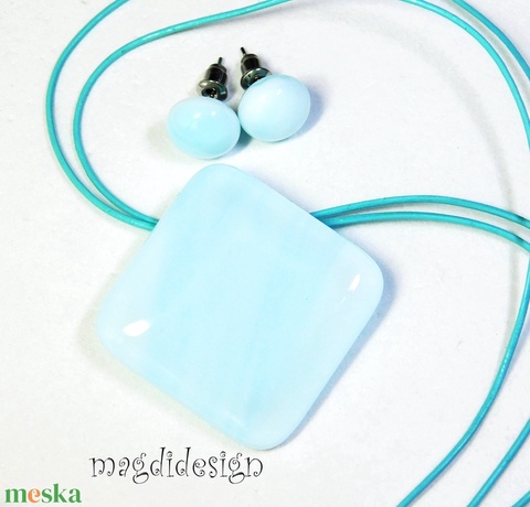 Púderes türkizes üvegékszer szett, nyaklánc, stiftes fülbevaló