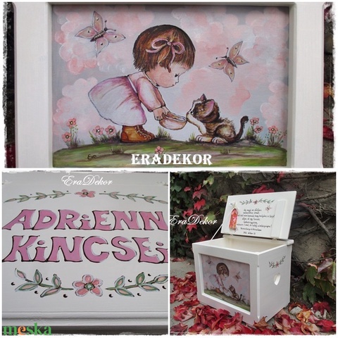 gyerekszoba bútorok, romantikus antikolt festéssel készült fa ajándéktárgyak a provence-i stílus jegyében