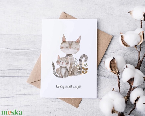 Kedves cicákkal illusztrált vicces Anyák napi köszöntőkártya, mely tökéletes ajándékkísérőnek is, de képkeretben az otthonodat is díszítheted vele!