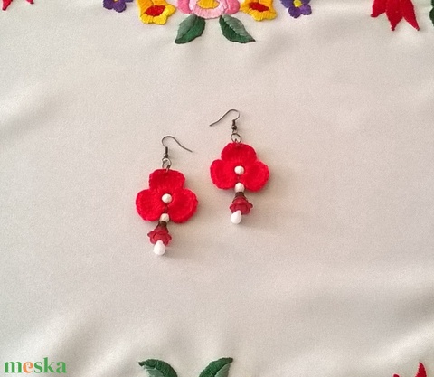 - Anyaga: horgoló fonal, gyöngyök, harangvirág, szerelőpálca, szerelőkarika, gyöngykupak, fülbevalóalap