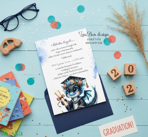 Emeld ki az ovis vagy bölcsis ballagás ünnepét ezzel az elegáns, egyedi sárkányos ballagási meghívóval! Tökéletes választás, ha szeretnétek stílusosan meghívni szeretteiteket az emlékezetes eseményre.