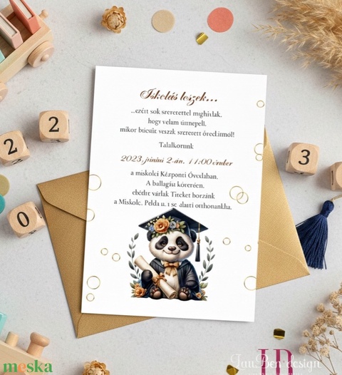 Ovis vagy bölcsis ballagási meghívó pandás grafikával – prémium, személyre szabható.