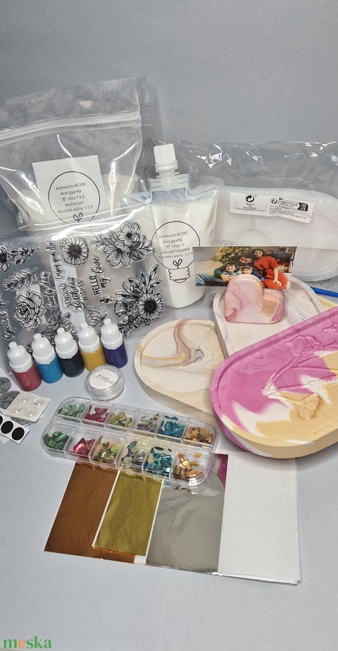 Ez a fantasztikus ALL IN jesmonite akrilgyanta kezdő szett mindent tartalmaz amire szükséged lehet h különböző izgalmas technikákat kipróbálhass ki.