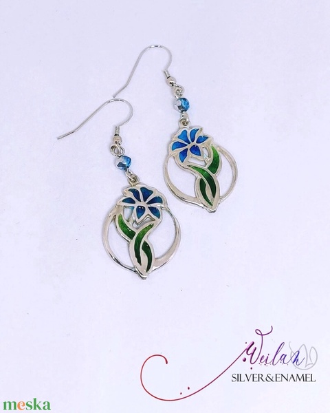 Flora - Liliom ezüst tűzzománc fülbevaló - kék
