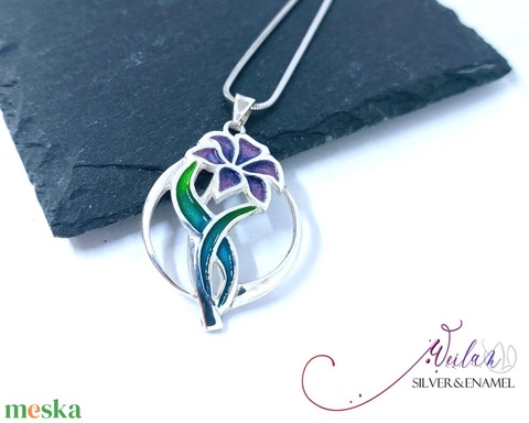 Flora - Liliom ezüst tűzzománc medál - lila