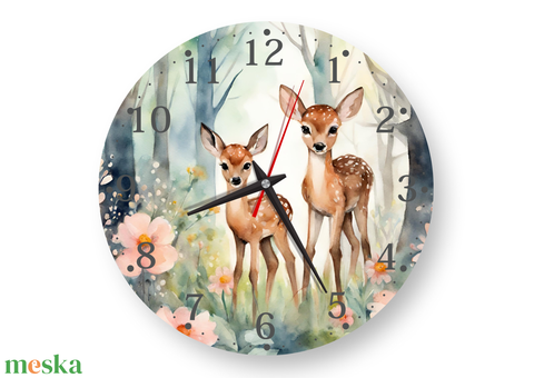 Erdei őzikés nagyméretű , hangtalan ,személyre szabott falióra gyerekeknek