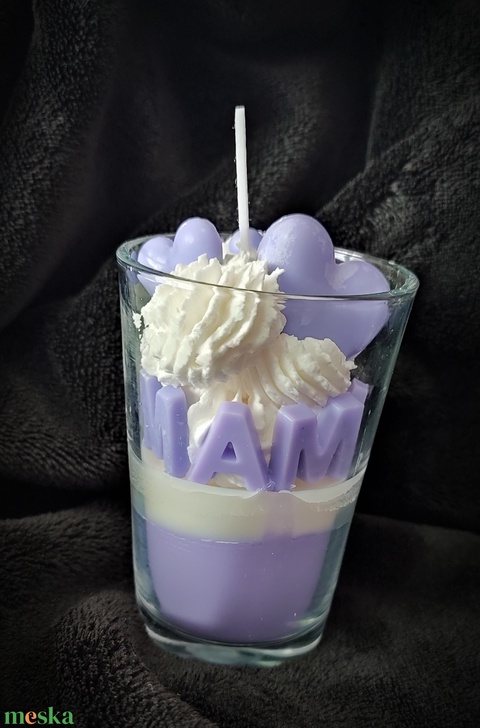Anyáknapi levendula illatú desszert gyertya MAMA felirattal, illatgyertya, szójaviasz gyertya, dekorgyertya