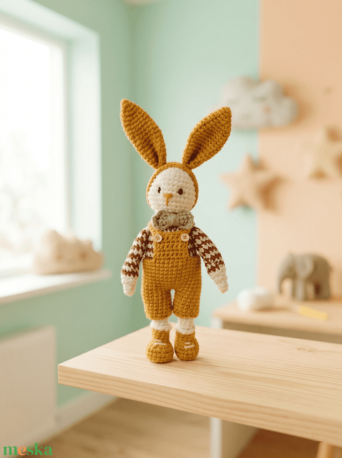 Horgolt nyuszi kertésznadrággal,csokornyakkendővel