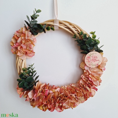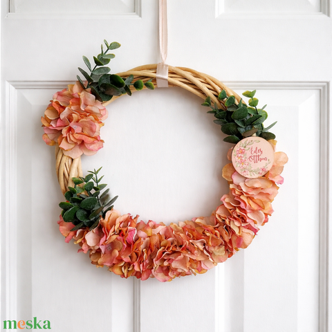 Ajtódísz hortenzia selyemvirág szirmokkal