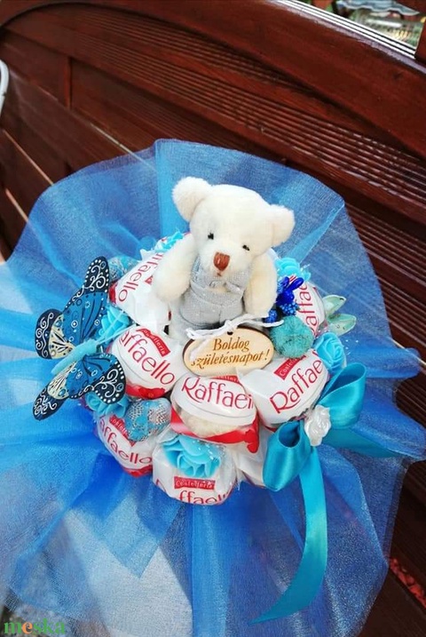 Raffaello csokor ballagásra kék