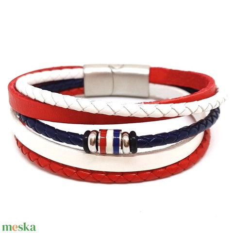 Matróz tűzzománc gyöngyös - 5 szálas valódi bőr női karkötő, nemesacél mágneskapoccsal