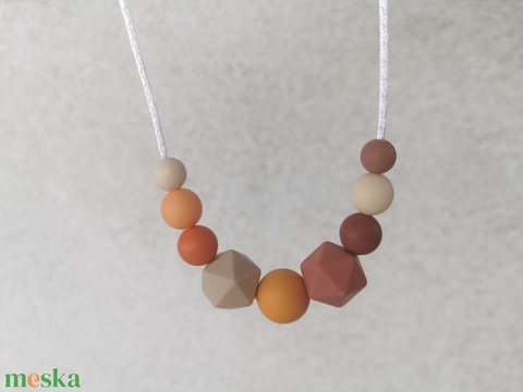 szilikon gyöngy, szatén zsinór, műanyag csat