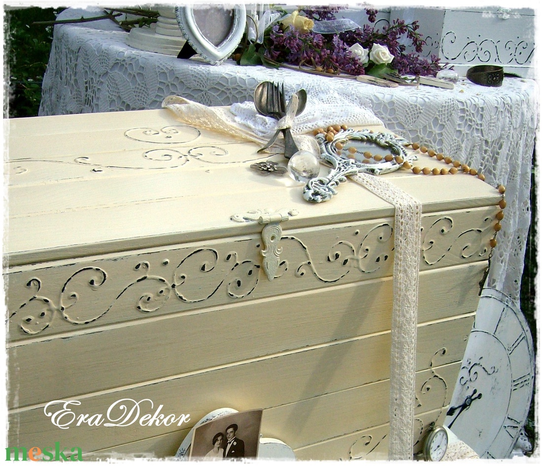 gyerekszoba bútorok, romantikus antikolt festéssel készült fa ajándéktárgyak a provence-i stílus jegyében