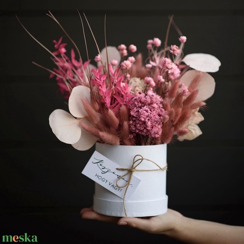 Szülőköszöntő szárazvirág box, virágbox, Anyák napjára, születésnapra
