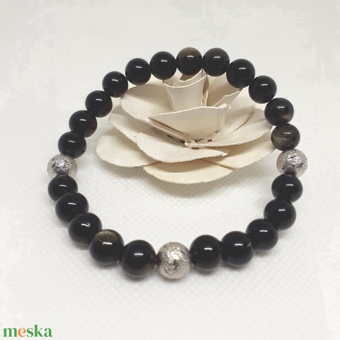 Ezüst obszidián ásvány karkötő