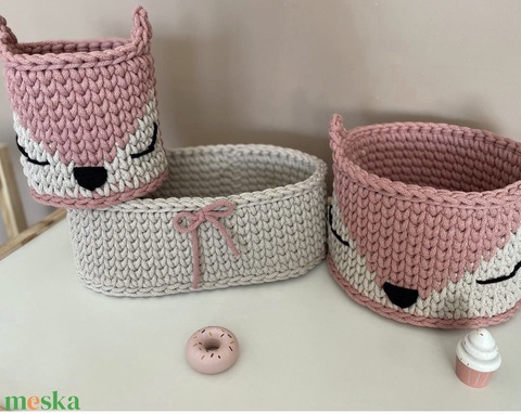 Horgolt játéktároló, állatos horgolt tároló, gyermekszobai tároló, gyermekszobai rendszerező