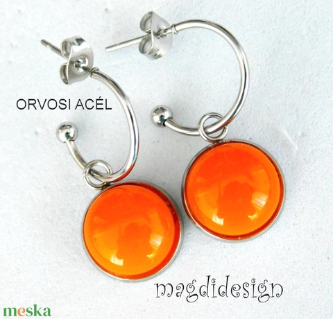 Narancssárga üvegékszer stiftes lógós nemesacél fülbevaló