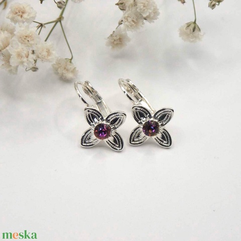Vörös színű Swarovski kristályos, egyedi készítésú, damaszk virág formájú fülbevaló - Rubine
