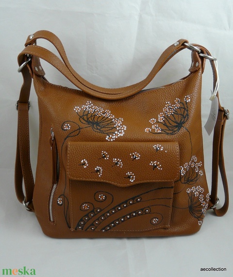 Pakolós, valódi bőr váll és hátitáska , egyedi, kézzel festett mintával!