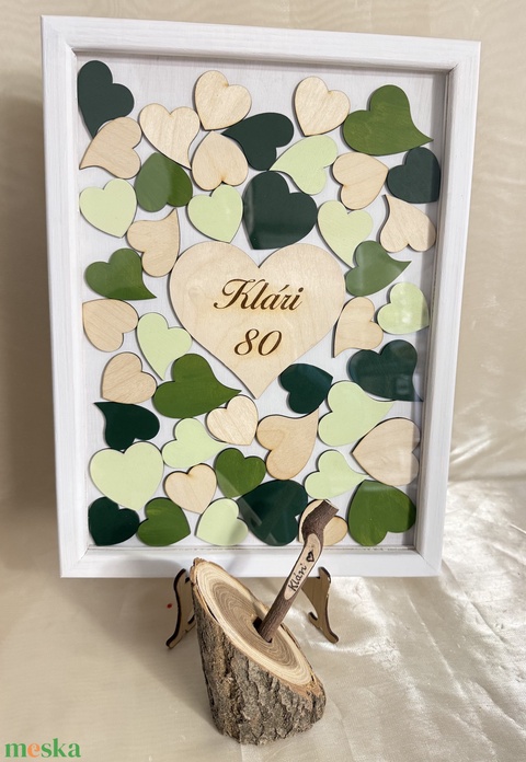 Születésnapi szívbedobós alternatív vendégkönyv fából, egyedi kivitelben