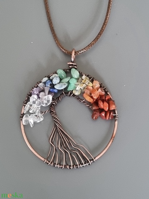 Vörösréz életfa medál a 7 csakra ásványaival, nyár, napsárga, ékszer, ajándék, nőnek