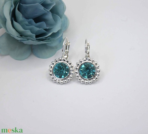 Swarovski kristályos, egyedi készítésú, bogyós szélű, kerek fülbevaló – Aquamarine