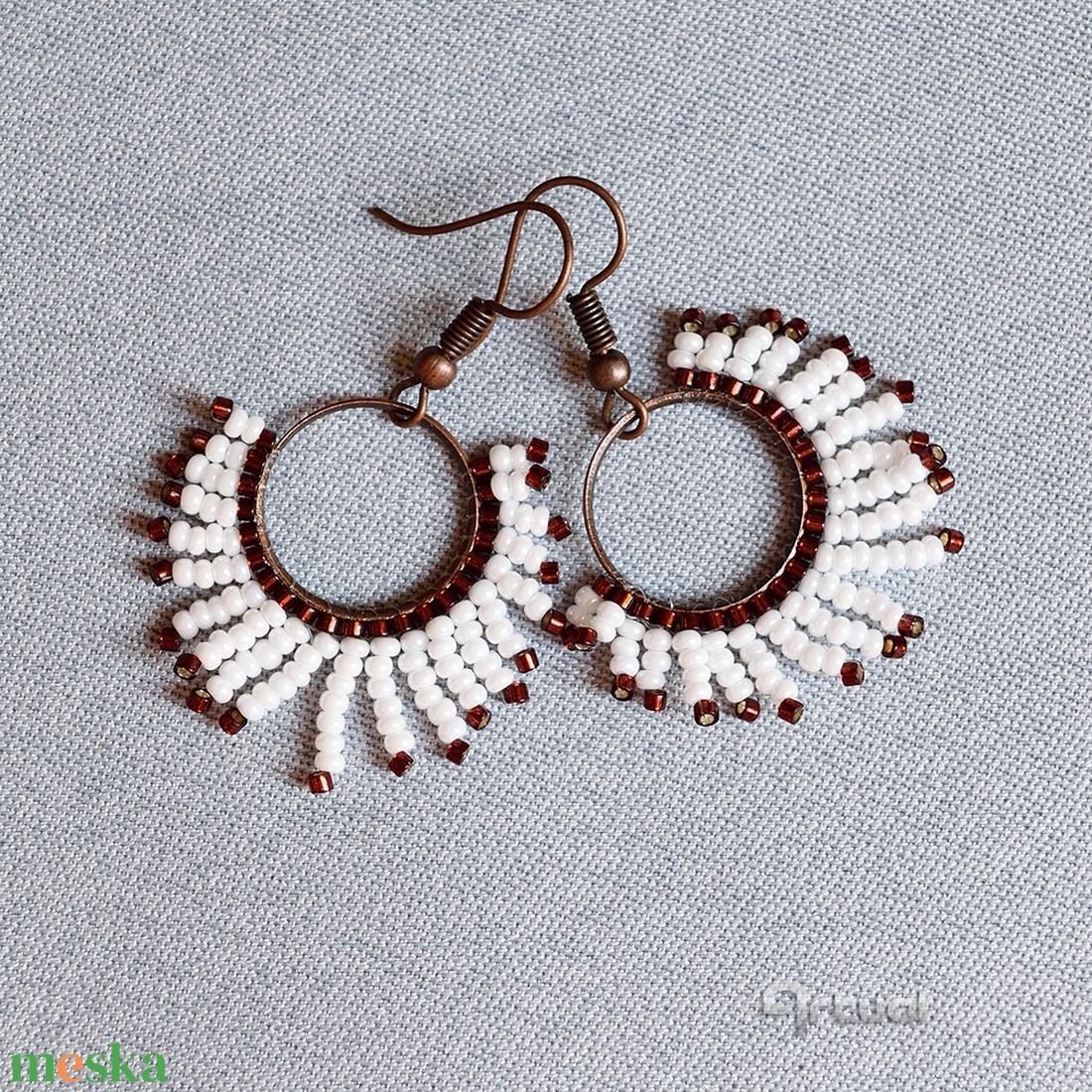 Kézműves karika fülbevaló japán és cseh kásagyöngyökkel